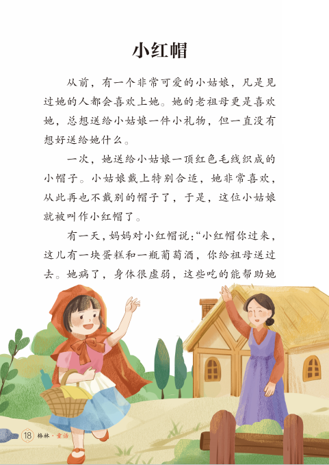 重复叙述的结构,强化了故事的紧张感和冲突性:以《小红帽》为例,小红帽前往外婆家的路途上,大灰狼的欺骗并非单一回合,而是层层递进的步步紧逼。它先是旁敲侧击询问目的地,继而巧言哄骗她进入树林采花,看似相似的互动中藏着细微却关键的变化——大灰狼的诡计愈发狡猾,小红帽的处境也随之愈发凶险。这种重复绝非简单的情节复刻,更如盘旋攀升的阶梯,每一次往复都让矛盾更尖锐,最终将故事推向危机四伏的高潮。