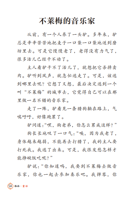 《格林童话》不仅仅是一系列精彩纷呈的故事,更是富含深刻寓意的智慧宝库。在阅读过程中,我们不妨多思考一下故事背后的寓意和道理,试着走进情节的肌理:留意《狼和七只小山羊》中羊妈妈的叮嘱与小羊的轻信,感受《不莱梅的音乐家》里弱者联盟的智慧,在场景描绘中想象故事的进展。