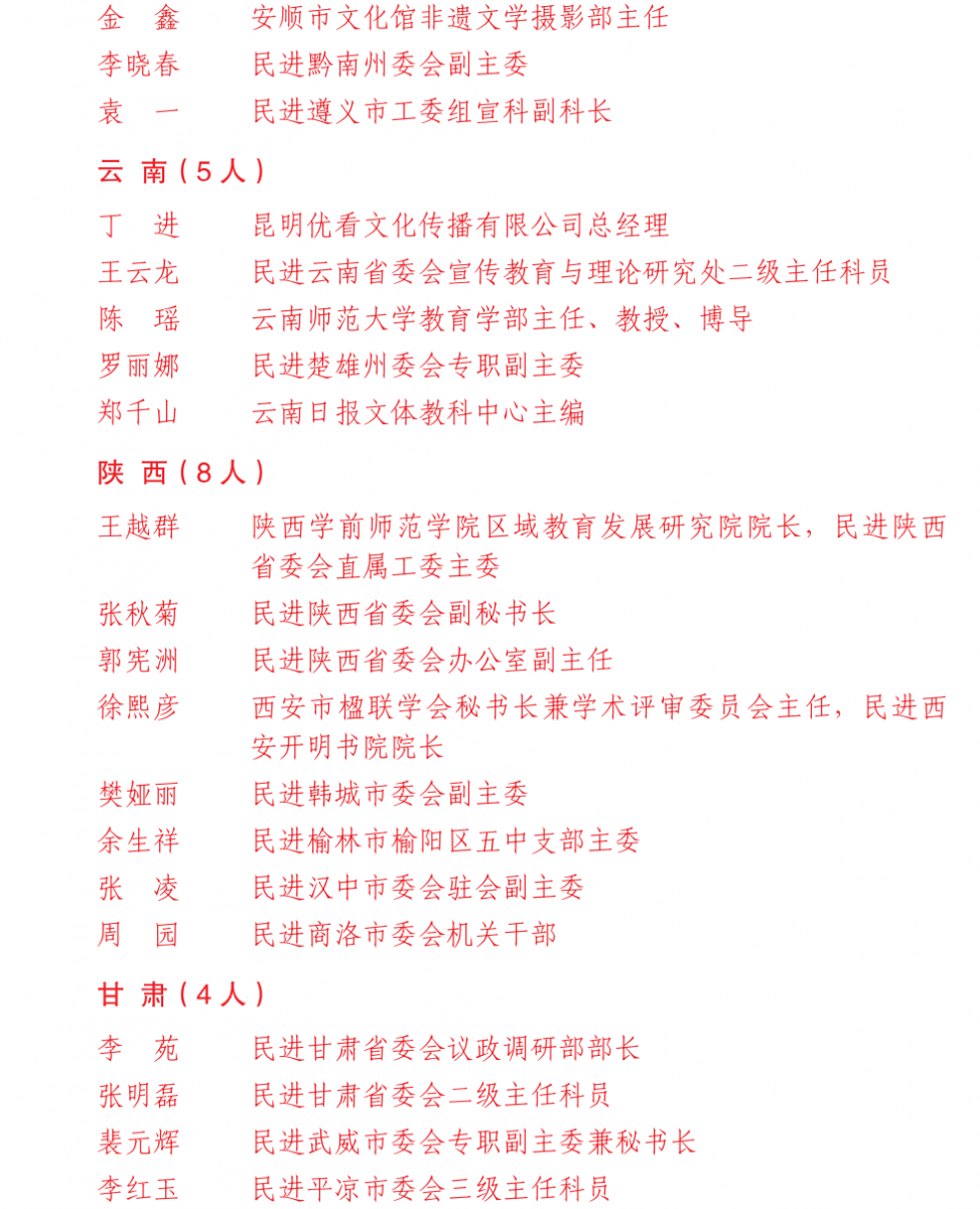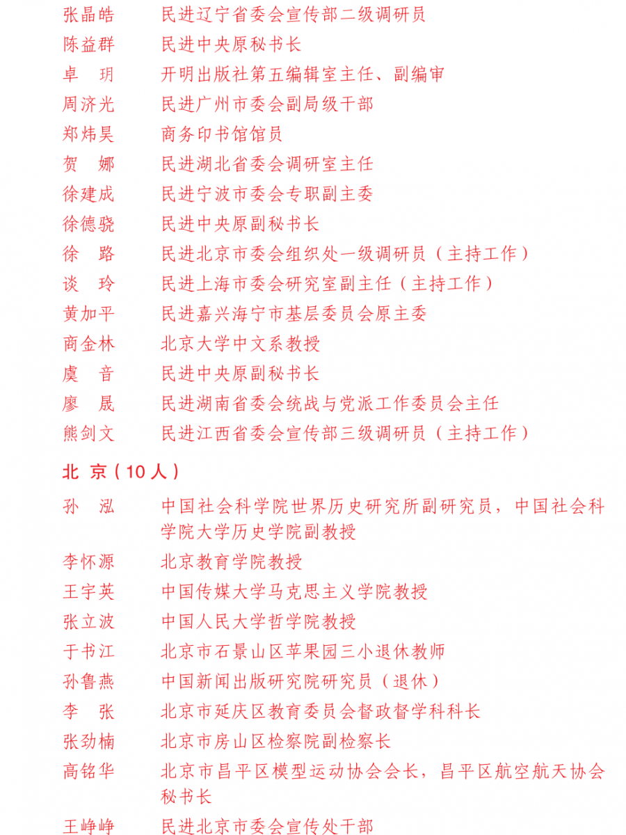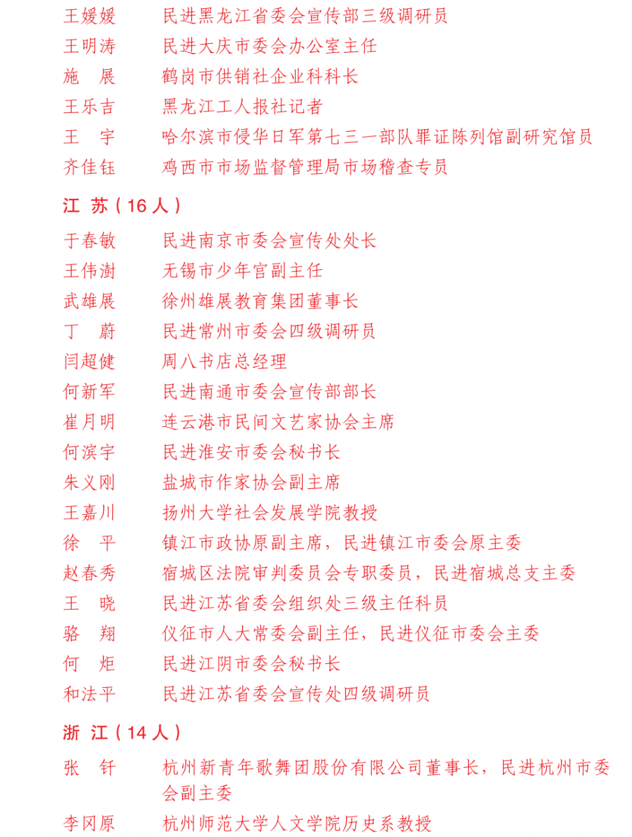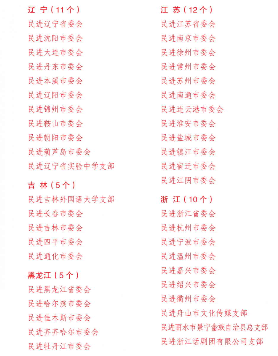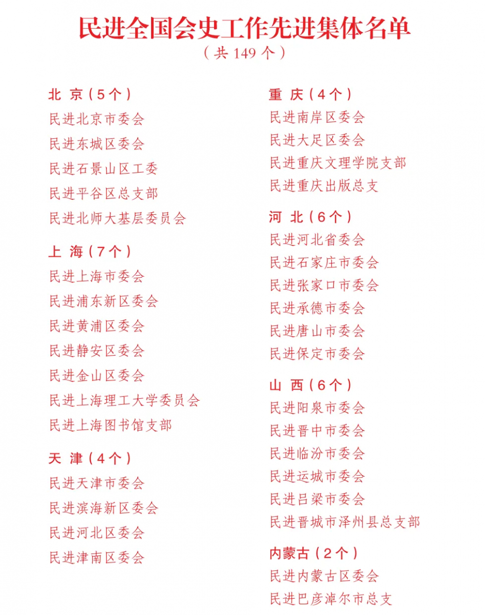 为树立典型、表彰先进,民进中央决定,授予民进北京市委会等149个组织“民进全国会史工作先进集体”称号;授予王玉英等244人“民进全国会史工作先进个人”称号;授予《中国民主促进会八十年》(30卷)等88项成果“民进会史研究优秀成果”称号。