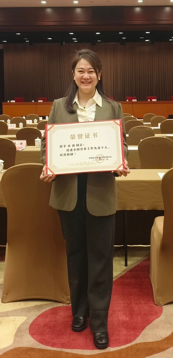 此次表彰中,我社卓玥同志获评“民进全国会史工作先进个人”称号,这是对她长期以来深耕会史研究、倾心成果传播的高度认可。在会史资料收集整理、出版物策划编辑等工作中,卓玥同志始终秉持严谨细致的专业态度,深挖会史中的精神富矿,用实际行动诠释了民进会员的责任担当,也为全社同仁树立了学习榜样。
