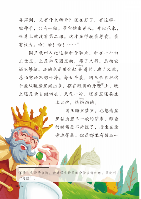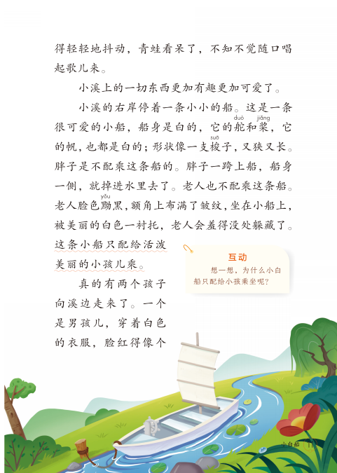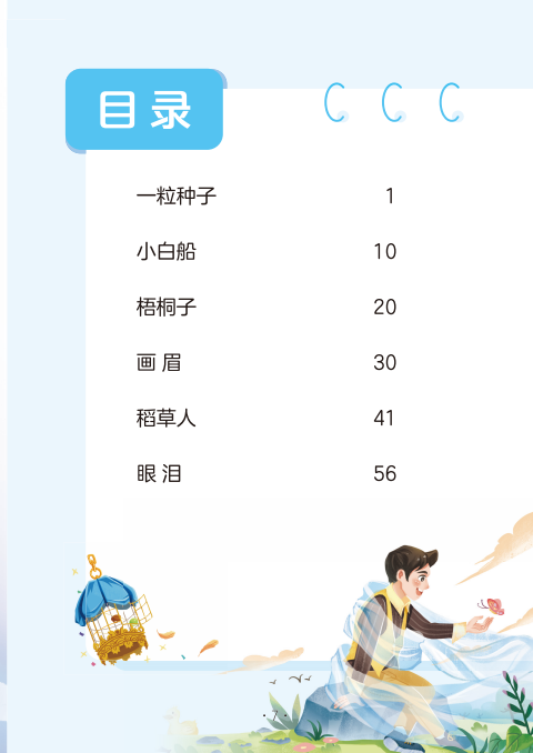 书中的插图能带你走进故事的场景,读《小白船》时,对着插图找一找跳舞的小红花和漂在溪上的小白船;读《梧桐子》时,看看梧桐子飘向远方的样子。你也可以拿起画笔,画一画稻草人站在稻田里的模样,或是《一粒种子》开出的花,画完之后,故事就会牢牢记在心里啦。